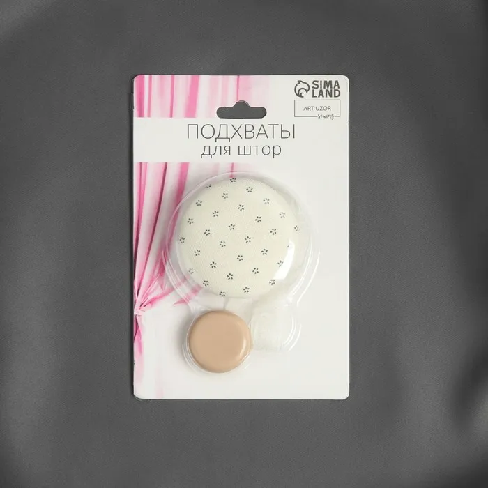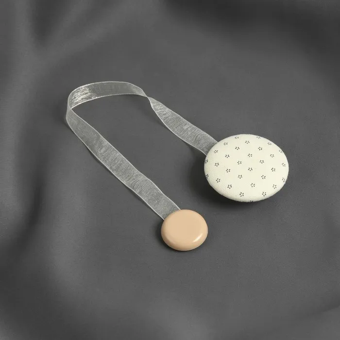 Элегантный аксессуар для штор станет отличным дополнением вашего интерьера. Выполненный в лаконичных белом и сером цветах, этот магнитный держатель для штор в виде круга не только придаст стильный акцент вашему дому, но и обеспечит удобство в использовании. Его круглая форма и крепление на ленте позволяют легко управляеть световым потоком в помещении, создавая уютную атмосферу.
