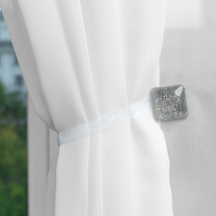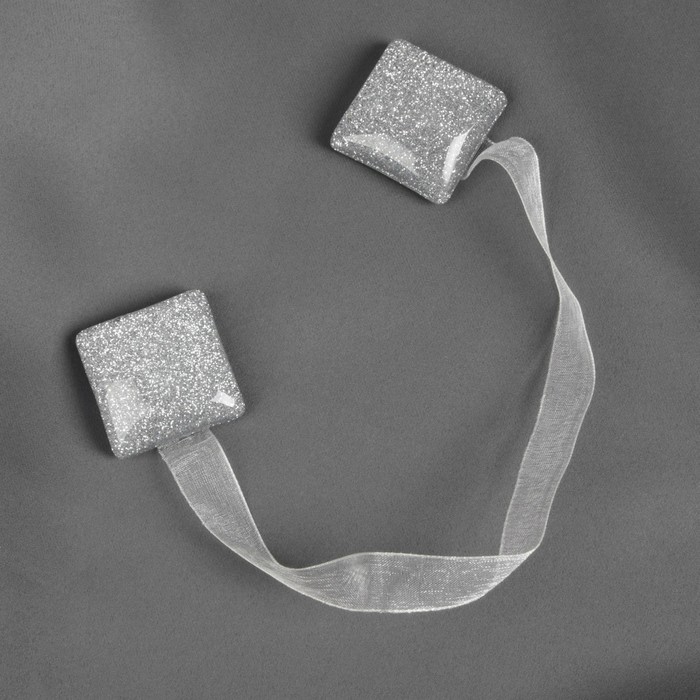 Подхват для штор «Квадрат с блёстками», 3.5×3.5 см, цвет серебряный