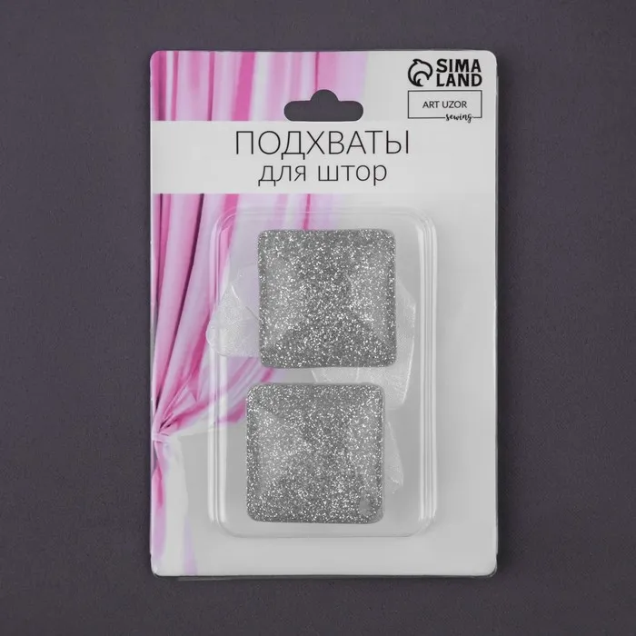 Подхват для штор «Квадрат с блёстками», 3.5×3.5 см, цвет серебряный — Характеристики