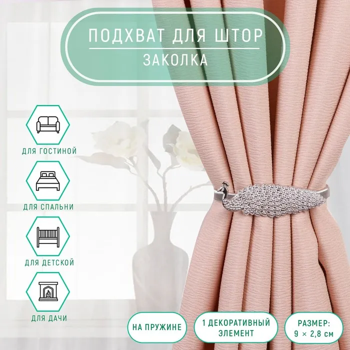Этот элемент не требует сложного монтажа и идеально фиксирует штору в нужном положении. Лента равномерно распределяет нагрузку, не оставляя следов на ткани. Подхват помогает создать аккуратный драпированный вид или зафиксировать полотнище по сторонам, чтобы открыть путь свету. А благодаря декоративному оформлению он становится самостоятельным элементом дизайна.