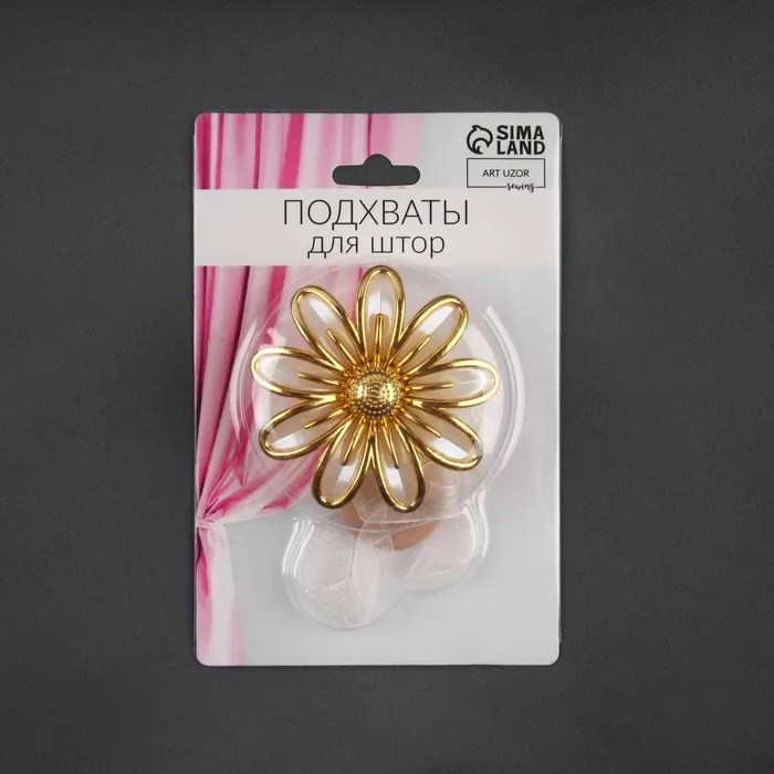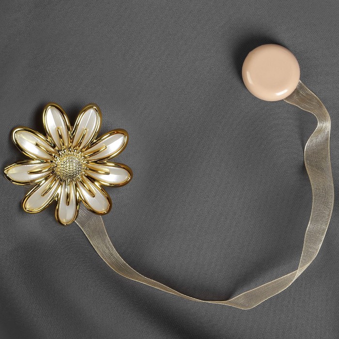 Подхват для штор «Ромашка», d=6 см, цвет бежевый, золотой — Характеристики