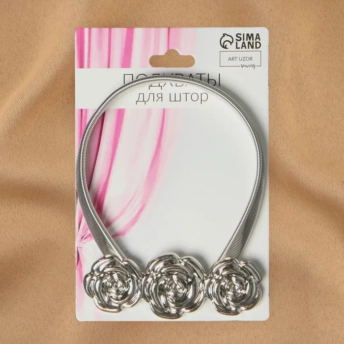 Подхват для штор «Розы», 8.7×3.5 см, 23.5 см, цвет серебряный — Характеристики
