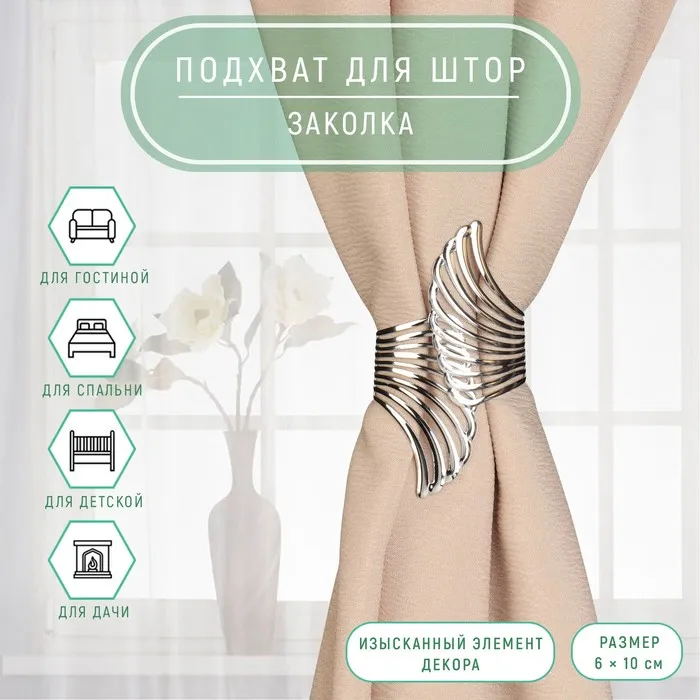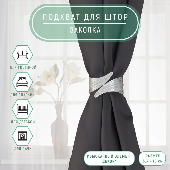 Добавьте в интерьер нотку романтики с помощью стильной детали!Декоративная заколка «Розы» — это элегантный подхват для штор, сочетающий функциональность и художественную выразительность. Серебристый металл и изящный растительный орнамент делают её акцентом оконного оформления.