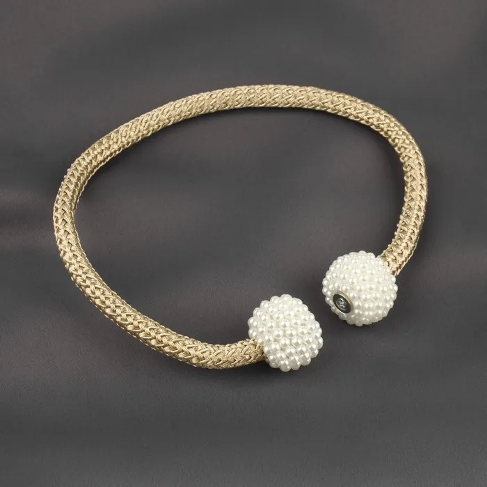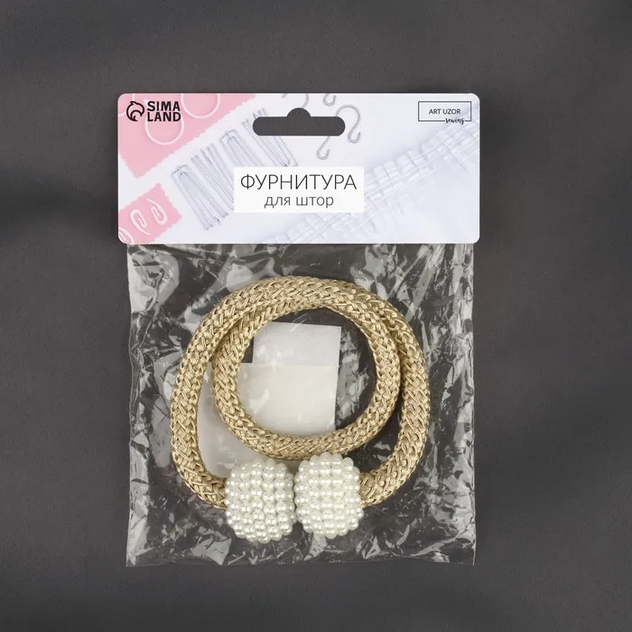 Подхват для штор на шнуре с перламутровыми вставками — аккуратный и стильный аксессуар, который помогает организовать пространство у окна без лишних усилий. Бело-бежевая палитра создаёт ощущение свежести и лёгкости, напоминая керамику ручной работы или натуральный жемчуг. Круглая форма подчёркивает мягкость линий и добавляет интерьеру сбалансированности.