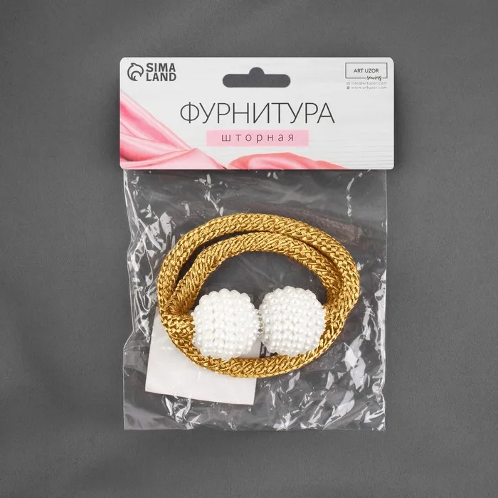 Подхват для штор «Шарики из бисера», d=3×40 см, цвет белый, золотой — Характеристики