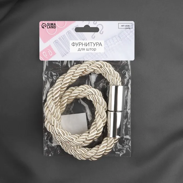 Подхват для штор «Шнур витой», d=1.5×56 см, молочный — Характеристики