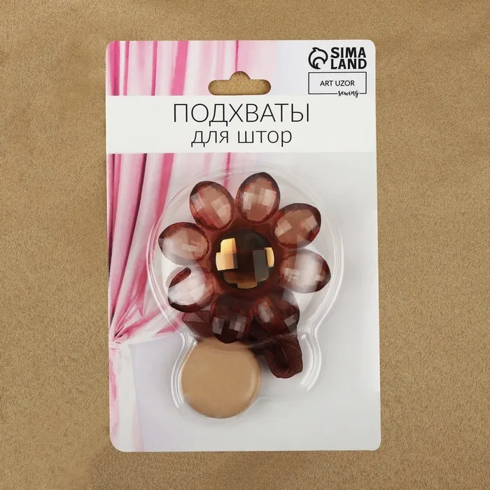 Подхват для штор «Цветок», 6×6 см, коричневый — Характеристики