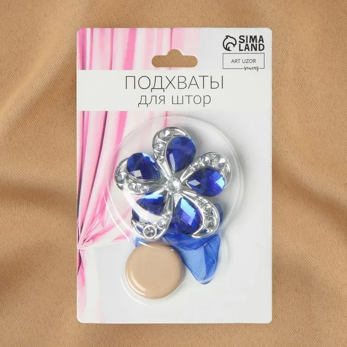 Подхват для штор «Цветок ромашка», d=5.5 см, синий — Характеристики