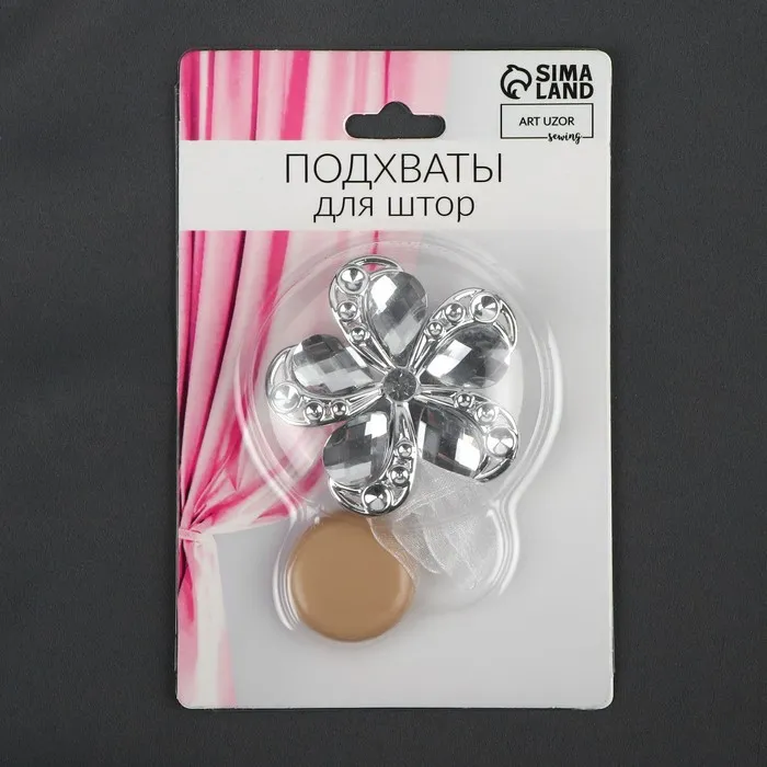 Подхват для штор «Цветок ромашка», d=5.5 см, цвет серебряный — Характеристики