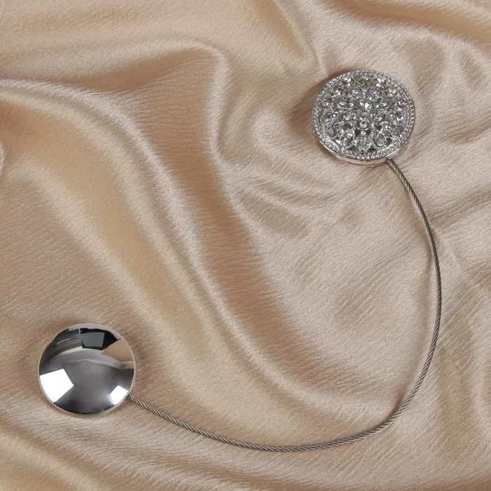 Эти винтажные держатели для штор с серебристыми стразами добавят интерьеру ненавязчивый блеск и ретро-шарм. Круглые металлические подхваты диаметром 4 см сочетают прочность и лёгкость — пластиковые вставки снижают общий вес, но сохраняют устойчивость даже для плотных портьер. Тросовая система крепления обеспечивает плавное движение штор без перекручивания.