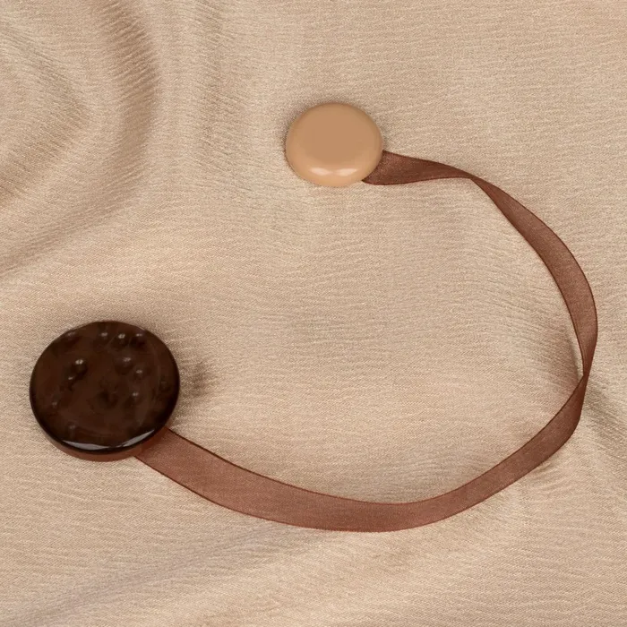 Коричневый подхват с перламутровым оттенком и круглой формой представляет собой элегантное решение для фиксации штор на ленте. Компактный размер 4×4 см делает его незаметным, но при этом функциональным акцентом, который помогает аккуратно собрать ткань и подчеркнуть текстуру материала.