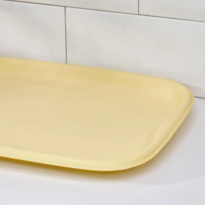 - Высокие бортики не позволяют посуде соскользнуть, а всё случайно пролитое или просыпанное останется на подносе;