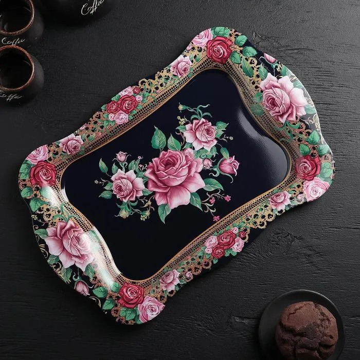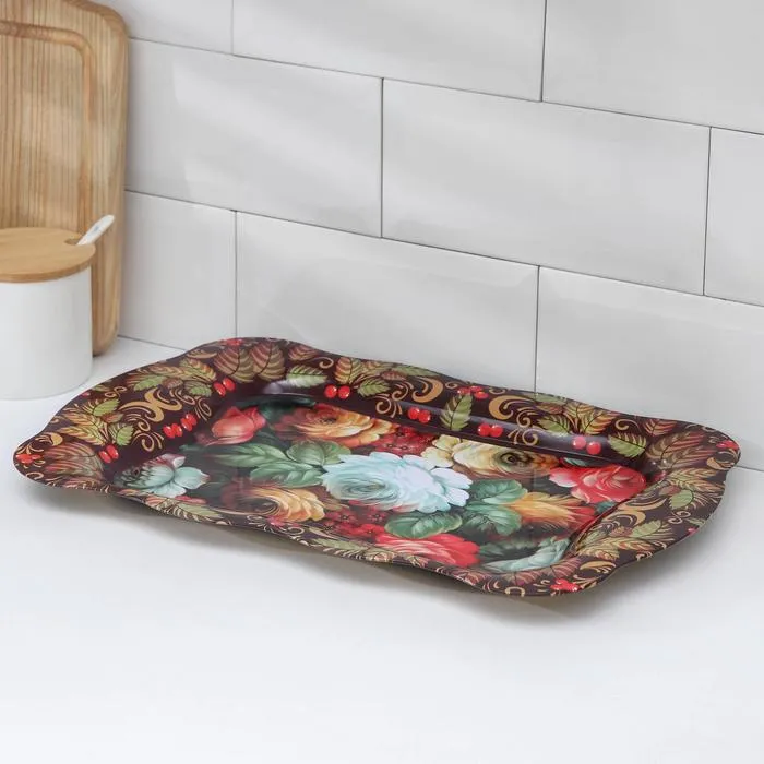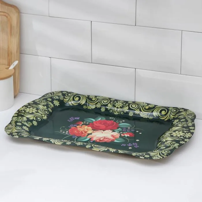 Измените свой опыт сервировки с привлекателен и функциональным подносом, который станет ярким акцентом вашего стола. Прямоугольный поднос размером 38x24,7 см выполнен из жести и украшен красивым цветочно-растительным рисунком, который привнесет нотку свежести в любое торжество.