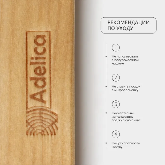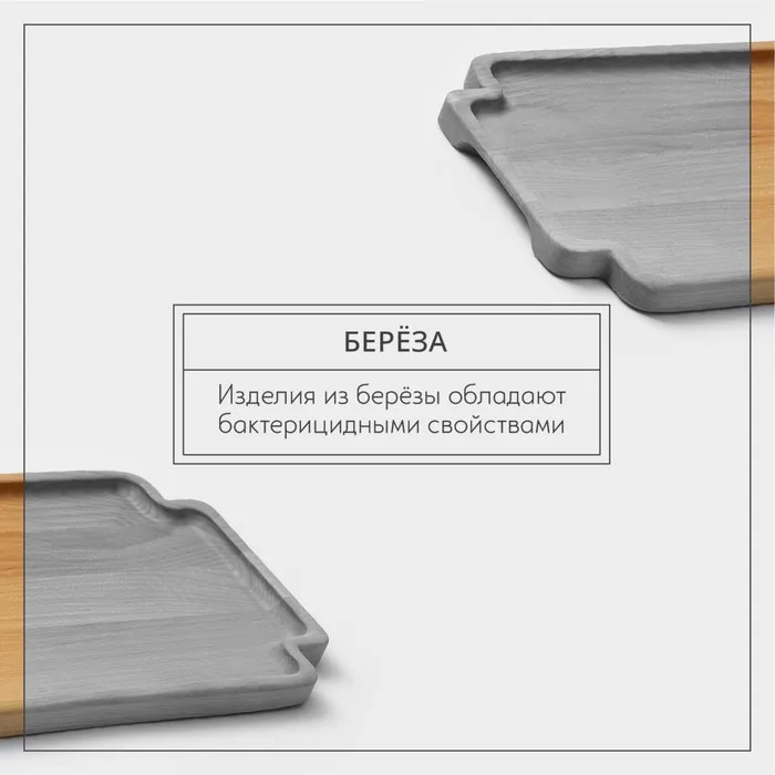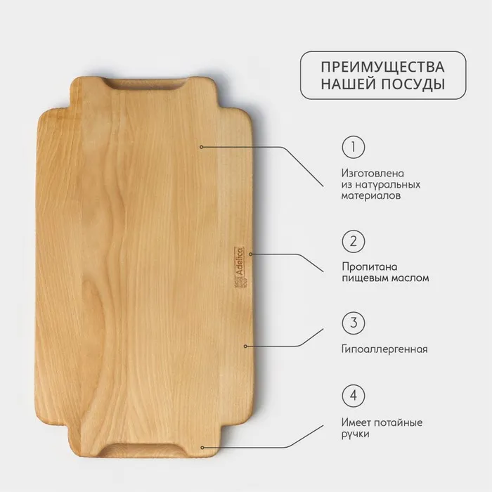 Поднос деревянный для подачи Adelica, 35×20×1,8 см, потайные ручки, массив берёзы, пропитано маслом, цвет натуральный — Характеристики