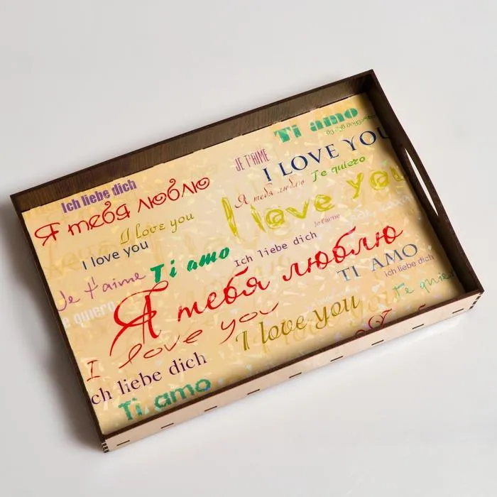 Поднос деревянный с ручками «Я тебя люблю на всех языках мира», 30×20×4.5 см — Характеристики