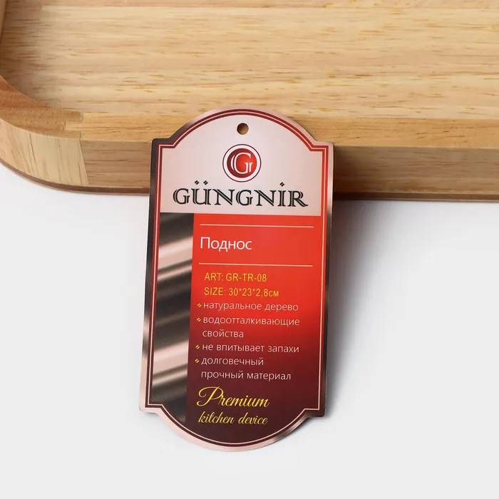 Поднос деревянный с ручками «Люкс», 30×23×2,8 см, гевея — Характеристики