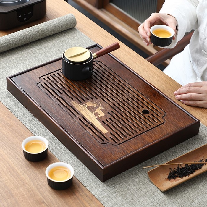 Поднос (чабань) - большая деревянная чайная доска для чайной церемонии. Этот изысканный предмет из натурального бамбука станет неотъемлемой частью вашего чайного ритуала. Прямоугольной формы и красивого дизайна, он подарит вам уют и комфорт во время чаепития. Поднос идеально подходит для сервировки чая. Вы можете удобно разместить на нем свои чайные принадлежности, а также поставить чашки и чайник. Доска имеет специальный слив воды, который предотвратит разлив чая на вашем столе.