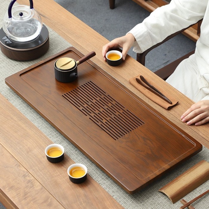 Поднос (чабань) - большая деревянная чайная доска для чайной церемонии. Этот изысканный предмет из натурального бамбука станет неотъемлемой частью вашего чайного ритуала. Прямоугольной формы и красивого дизайна, он подарит вам уют и комфорт во время чаепития. Поднос идеально подходит для сервировки чая. Вы можете удобно разместить на нем свои чайные принадлежности, а также поставить чашки и чайник. Доска имеет специальный поддон для слива воды, который предотвратит разлив чая на вашем столе.