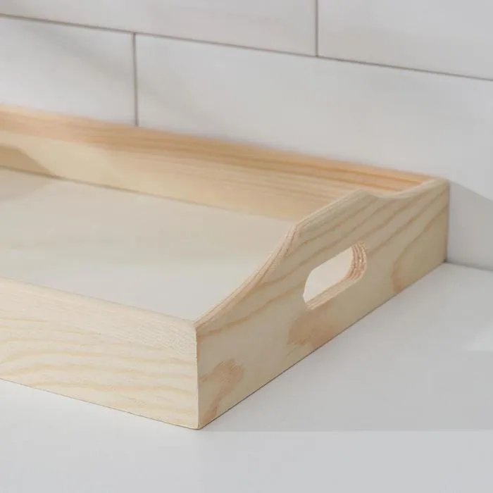 Универсальный поднос из сосны добавит уюта и тепла в ваш дом. С помощью такого деревянного подноса вы можете подавать красивый завтрак как с сервировкой на стол на кухне, так и с подачей подноса в кровать или на диван, а ваши романтичные вечера с вином станут ярче, если вы разложите закуски из мяса, сыров и фруктов на деревянный поднос. Также вы можете сервировать блюда для ужина непосредственно на декоративном подносе или же использовать его для суши