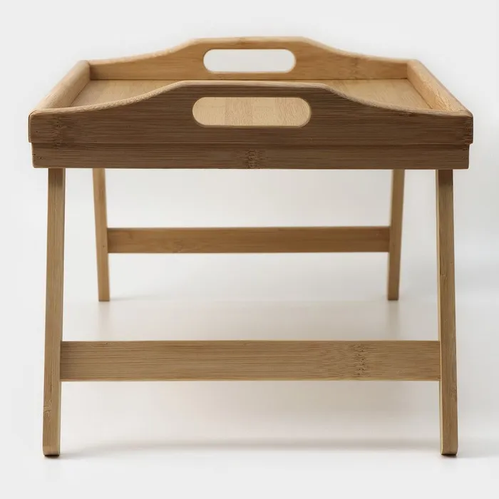 Столик-поднос выполнен из бамбука. Этот материал не только прочный и долговечный, но и не впитывает вкусы и запахи. Благодаря влагостойкости и высоким бортикам столика, вы можете наслаждаться завтраком в постели, не беспокоясь о том, что что-то может пролиться на кровать или диван.