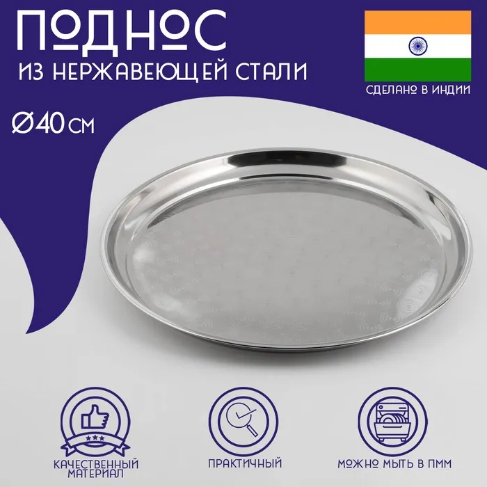 Поднос Доляна «Индия», d=40 см, нержавеющая сталь, серебристый — Характеристики