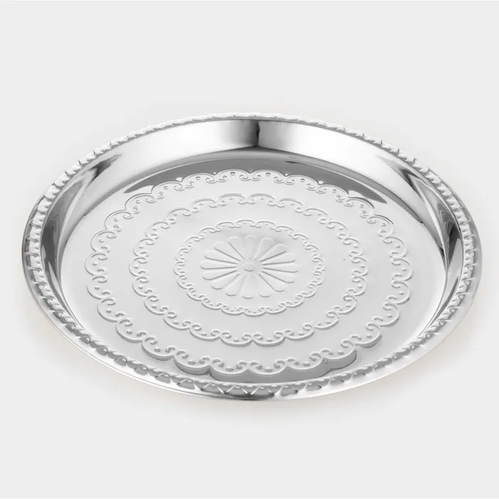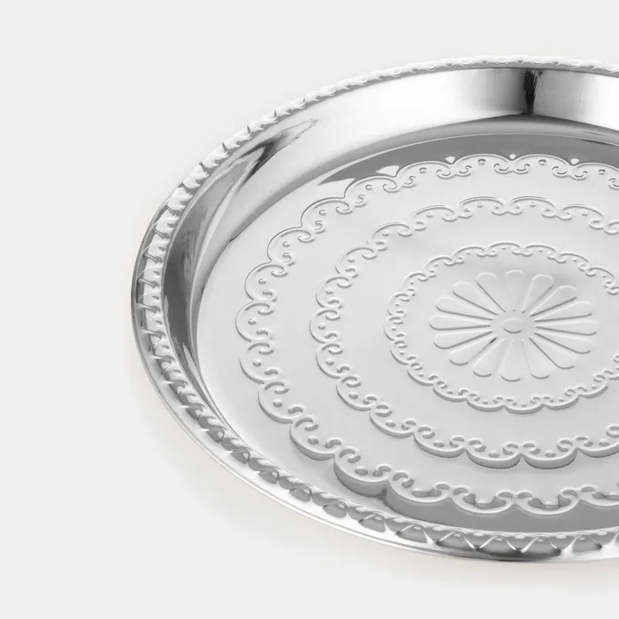 Поднос из нержавеющей стали круглый «Смеяна», d=33 см, цвет серебряный — Характеристики