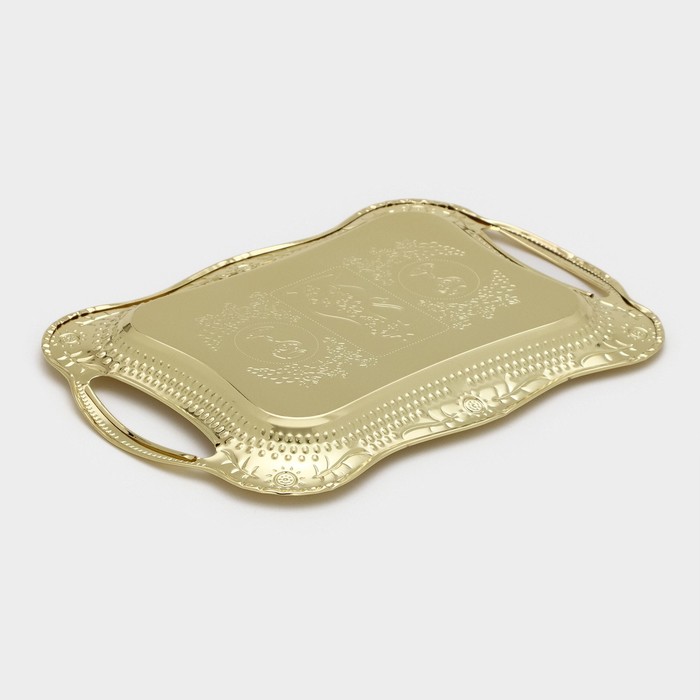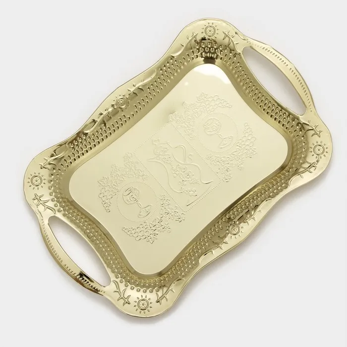 Поднос из нержавеющей стали с ручками «Изобилие. Золото», 31×20×2 см, цвет золотой — Характеристики