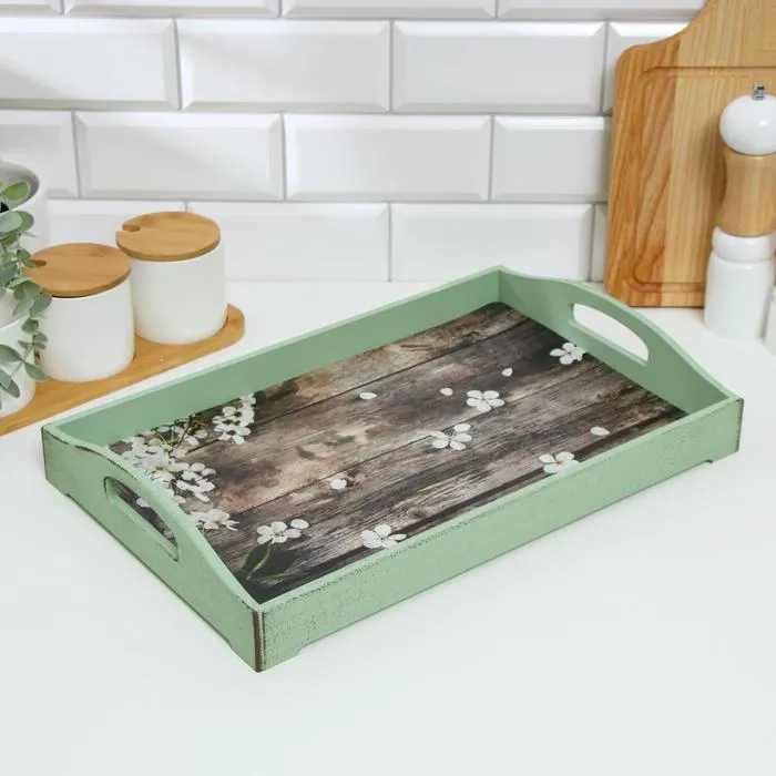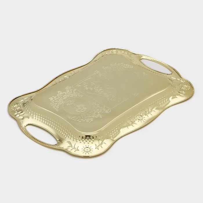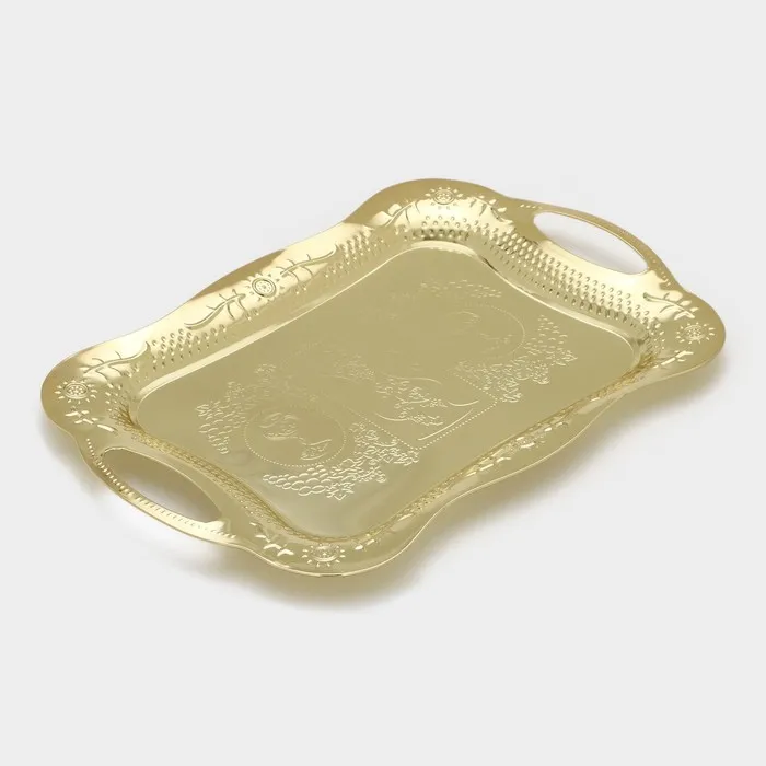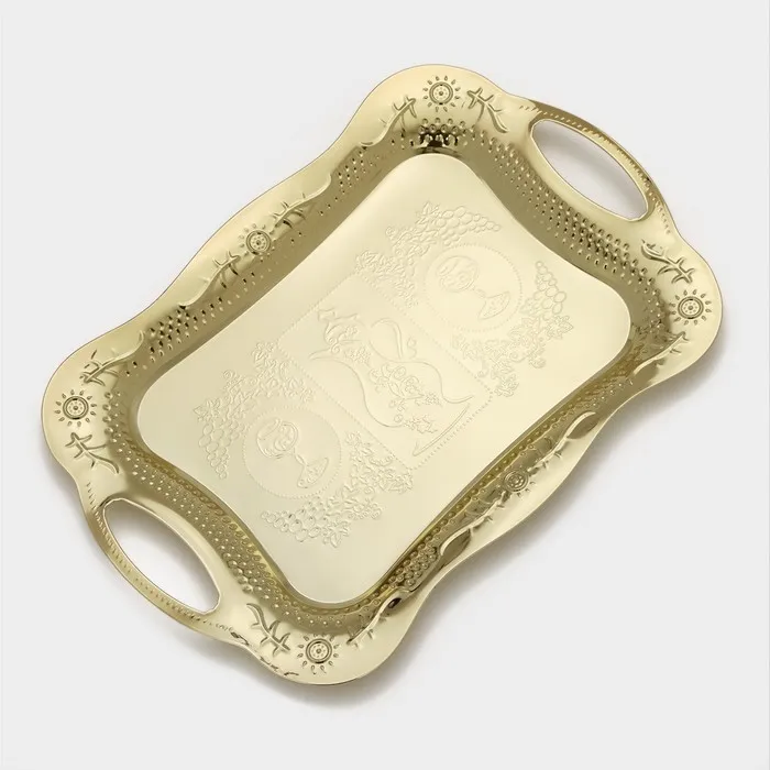Поднос из нержавеющей стали с ручками «Изобилие. Золото», 44,7×30×3 см, цвет золотой — Характеристики