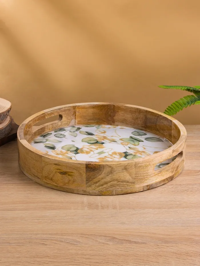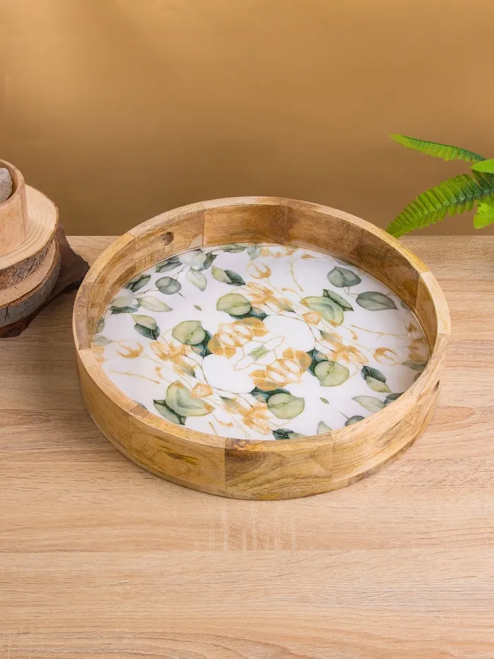 Поднос круглый с бортиками «Листья», 35×35×6.5 см, дерево манго — Характеристики