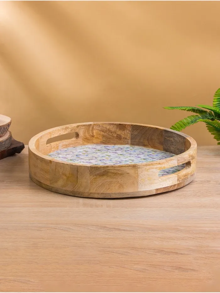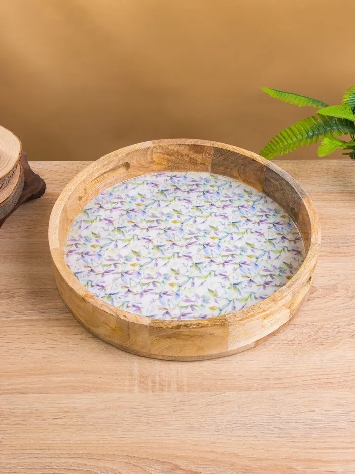 Поднос круглый с бортиками «Оттенки сирени», 35×35×6.5 см, дерево манго — Характеристики