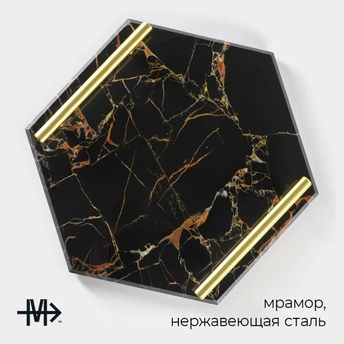 Добавьте в свою коллекцию кухонных аксессуаров поднос, который станет символом элегантности и утончённого вкуса. Шестиугольный поднос из коллекции Magistro «Marble» выполнен из натурального чёрного мрамора и декорирован элементами из нержавеющей стали. Этот изысканный предмет станет центром внимания на вашем столе, добавляя нотку роскоши в любую сервировку.
