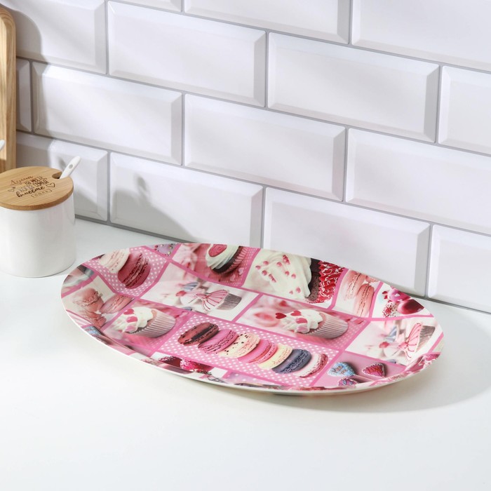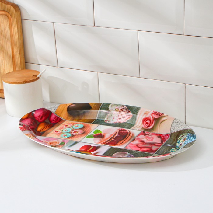 Поднос овальный Доляна «Макаруны», 37×24×3 см, МИКС — Характеристики