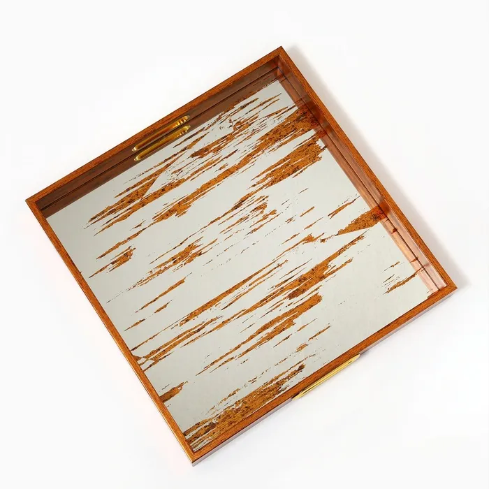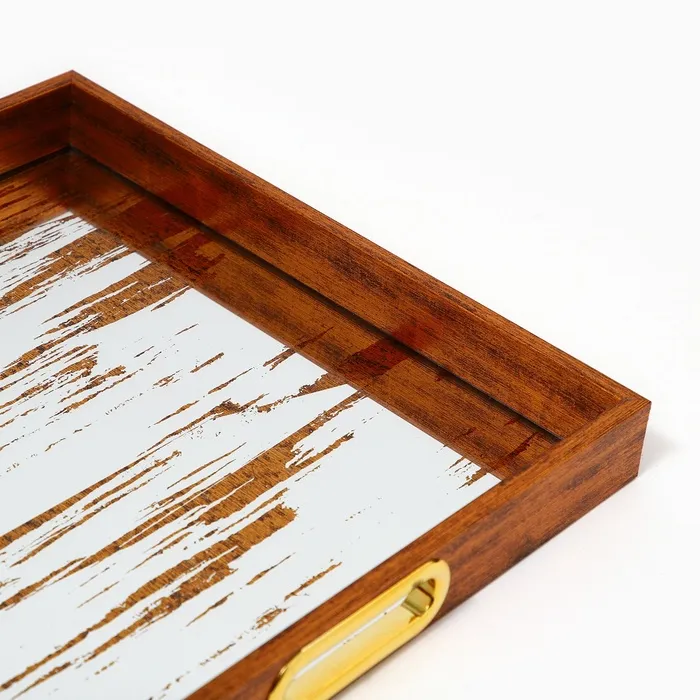 Поднос пластиковый прямоугольный с зеркалом «Штрихи», 34×34×4.5 см сервировочный