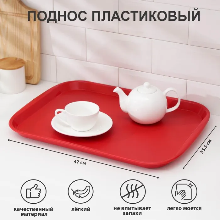 Поднос прямоугольный Verona, 47×35,5×2,5 см, цвет красный