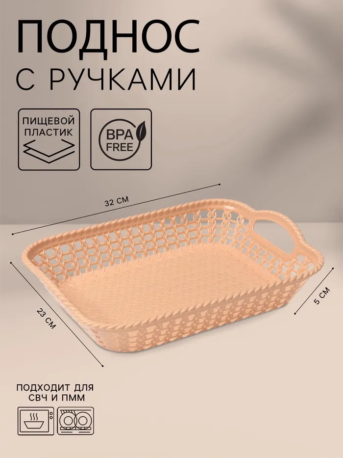 Поднос прямоугольный Доляна «Плетение», 32×23×5 см, пластик, МИКС — Характеристики