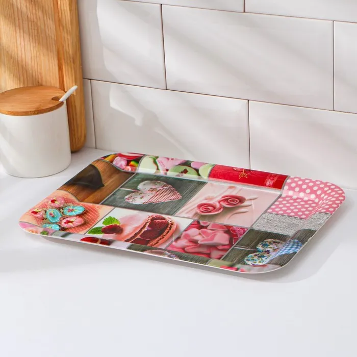 Поднос прямоугольный Доляна «Самобранка», 30×21×1.8 см, пластик, рисунок МИКС — Характеристики