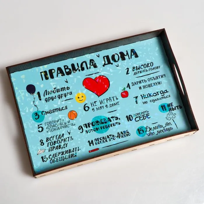 Поднос с ручками "Правила дома", деревянный, 30х20х4,5см — Характеристики