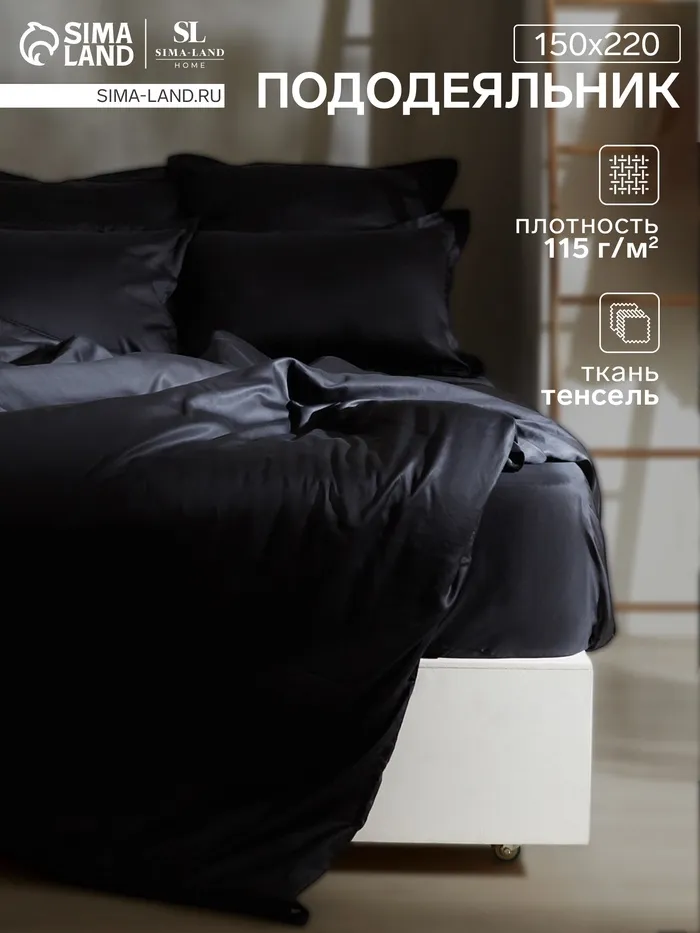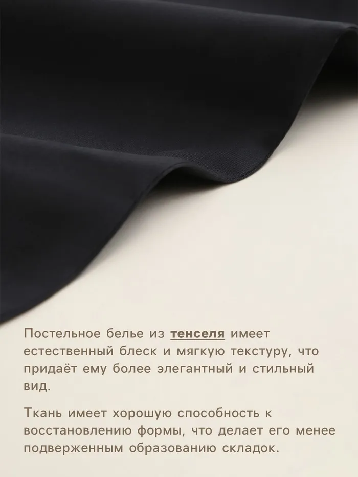 Чёрный пододеяльник из эвкалиптового волокна идеально впишется в ваш интерьер, предлагая элегантность и универсальность. Он выполнен из натурального материала тенсель, который гладкостью похож на шёлк, но при этом не магнитится.