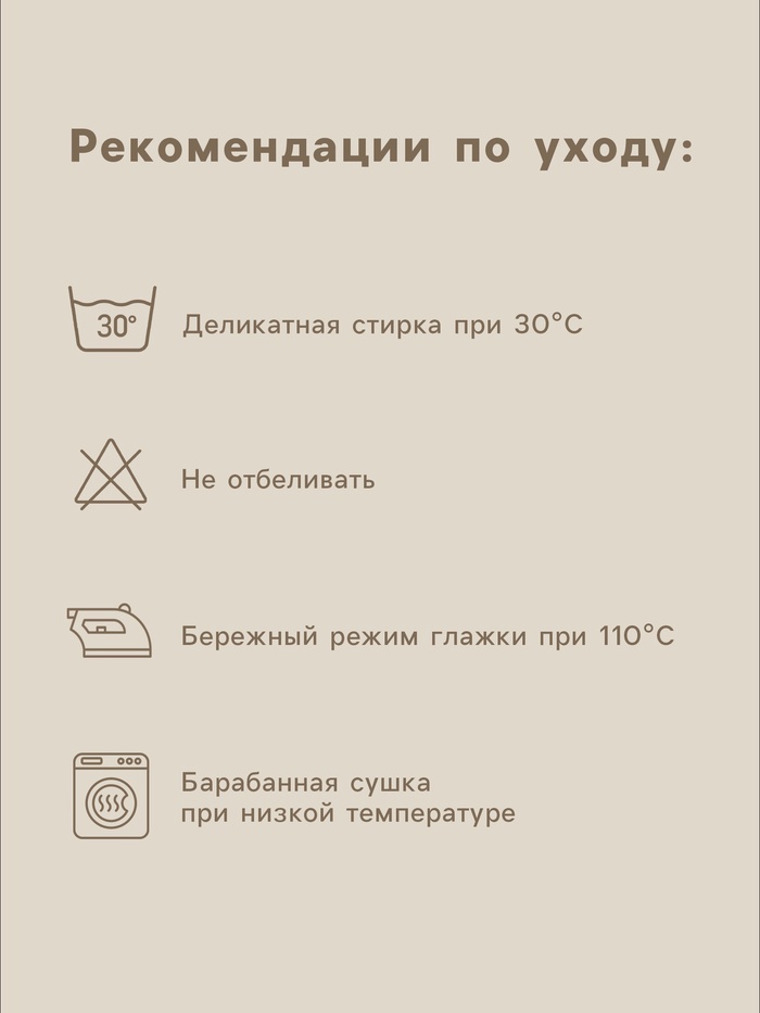 Рекомендации по уходу: Деликатная стирка при 30 °С