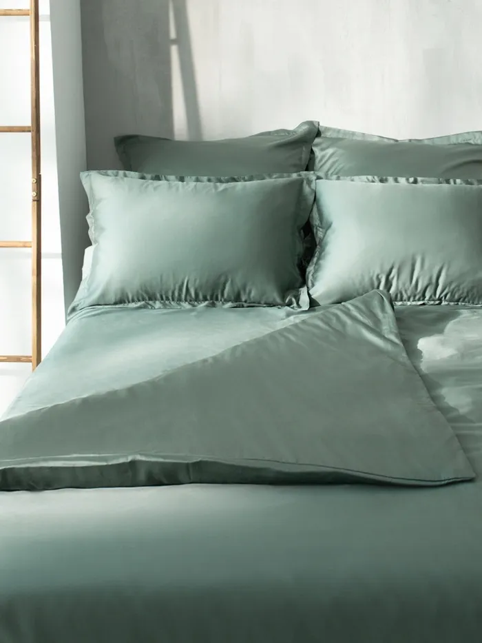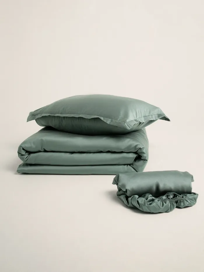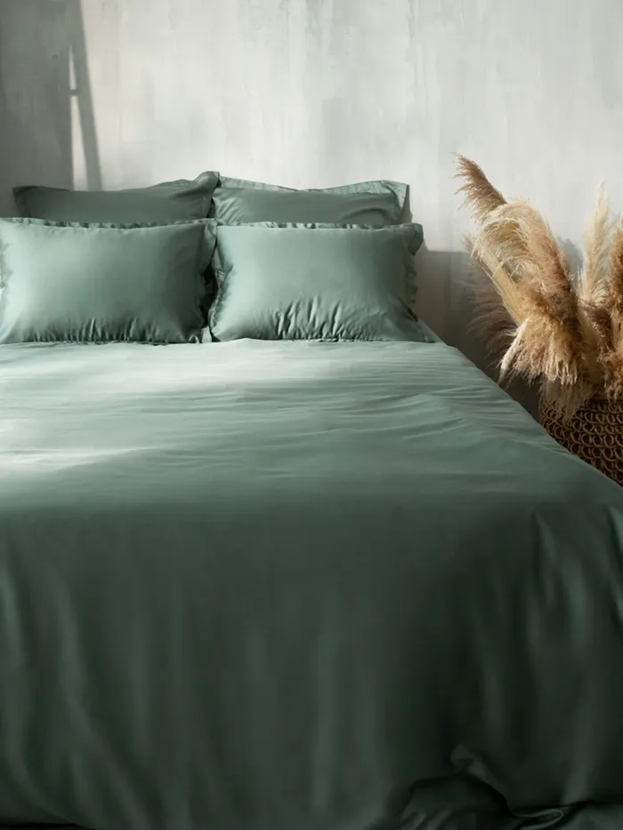 Полодеяльник спокойного оливкового оттенка из тенселя добавит вашей спальне комфорт и стиль.