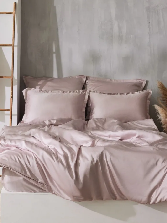 Пододеяльник из тенселя цвета нежной пудры станет отличным выбором для ценителей комфорта и стиля в спальне. Изготовленный из эвкалиптового волокна, этот двухместный пододеяльник создаёт ощущение свежести и лёгкости в любое время года.