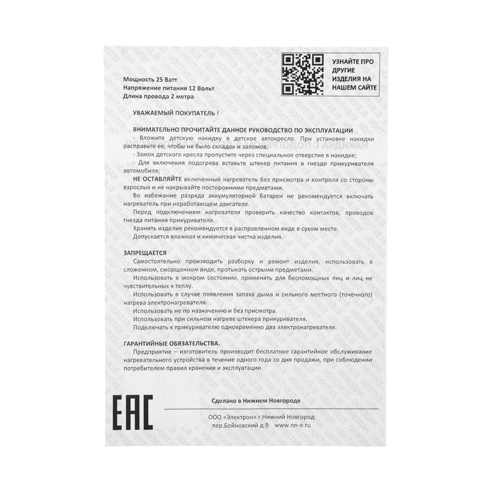 Подогрев для детского автокресла - это необходимый аксессуар, особенно в холодное время года. Он обеспечивает комфорт и тепло для вашего ребенка, предотвращая переохлаждение и возможные заболевания. Подогрев работает от сети 12В и имеет мощность 25Вт, что позволяет быстро нагревать поверхность кресла. Размеры подогрева составляют 60х23/30см, а длина провода - 2 метра. Подогрев выполнен из греющих нитей MicroHEAT, которые обеспечивают равномерное распределение тепла и долговечность использования. С помощью этого подогрева ваш ребенок будет чувствовать себя уютно и комфортно даже в самые холодные дни.