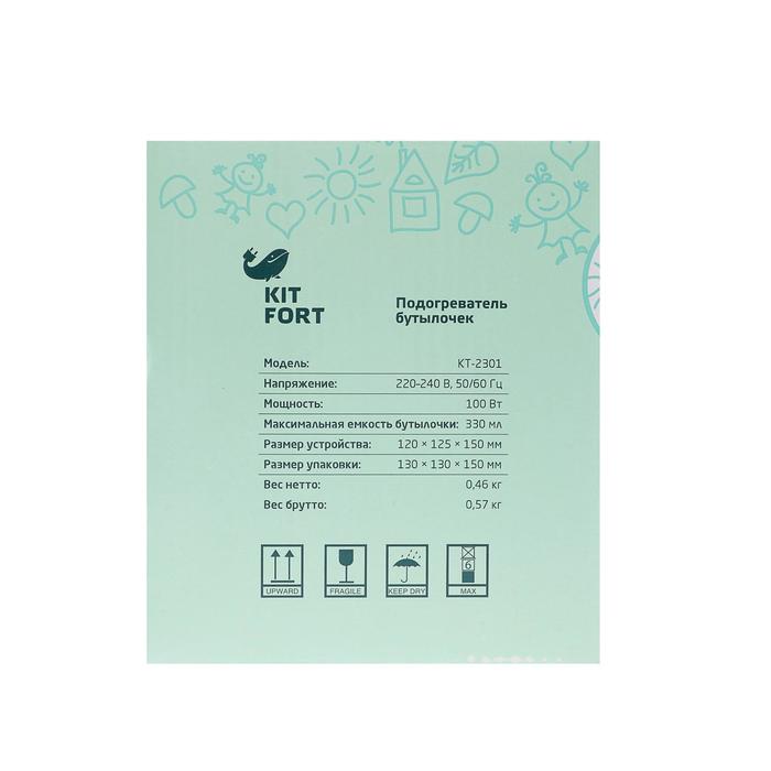 Подогреватель Kitfort КТ-2301 можно применять для бережного размораживания молока, нагрева детского питания до температуры 40 – 70°С и для стерилизации сосок и пустышек.
