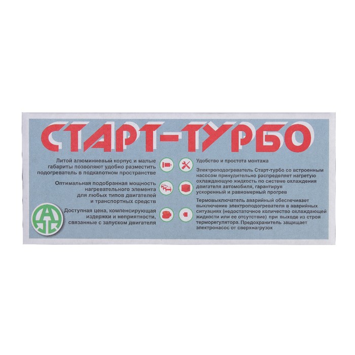 Предпусковой подогреватель двигателя с принудительной циркуляцией. Электрический подогреватель двигателя предназначен для прогрева охлаждающей жидкости двигателей легковых автомобилей в холодный период года. Встроенный насос обеспечивает более быстрый и равномерный прогрев двигателя, что существенно сокращает время прогрева автомобиля и расход топлива.