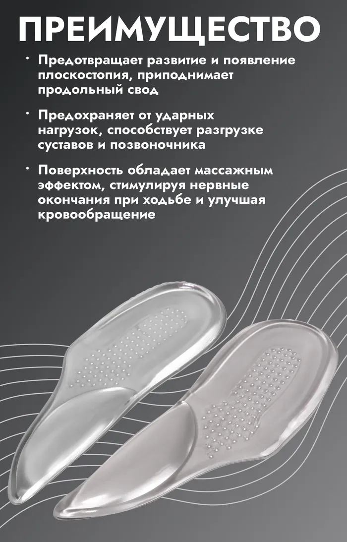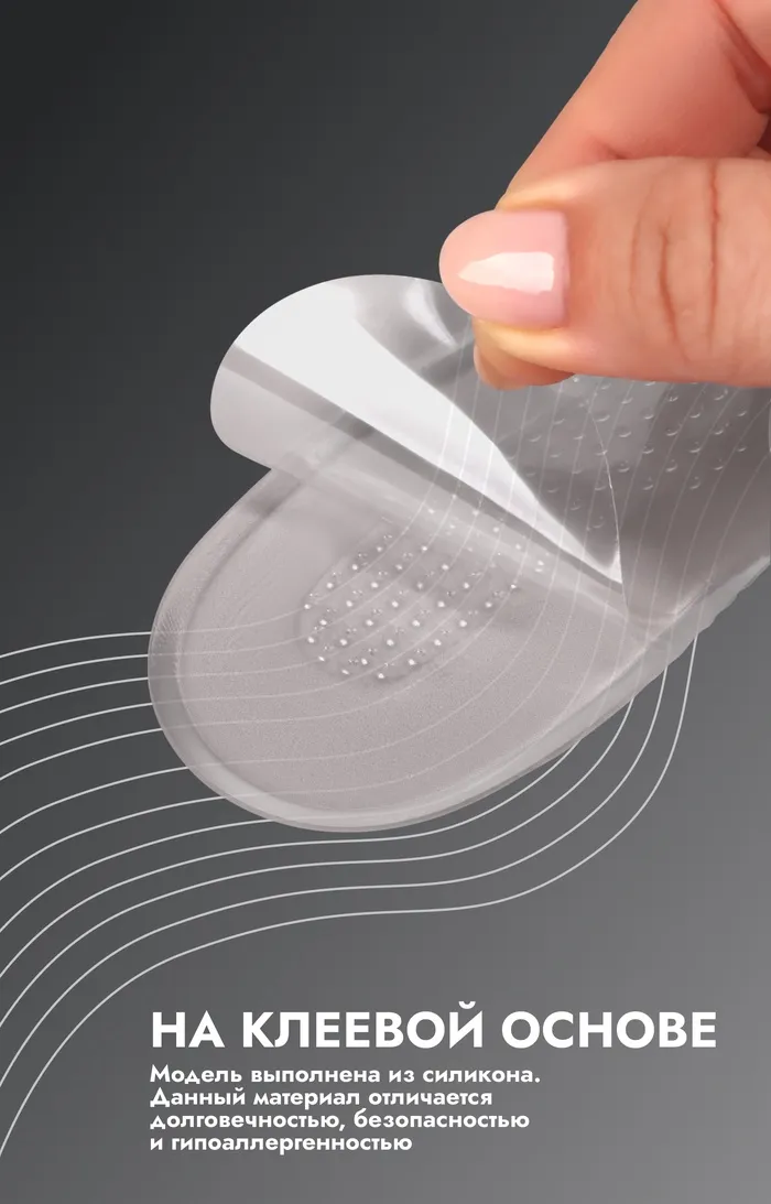 Подпяточники для обуви, с супинатором, на клеевой основе, силиконовые, 15.5×5.5 см, пара, прозрачные — Характеристики