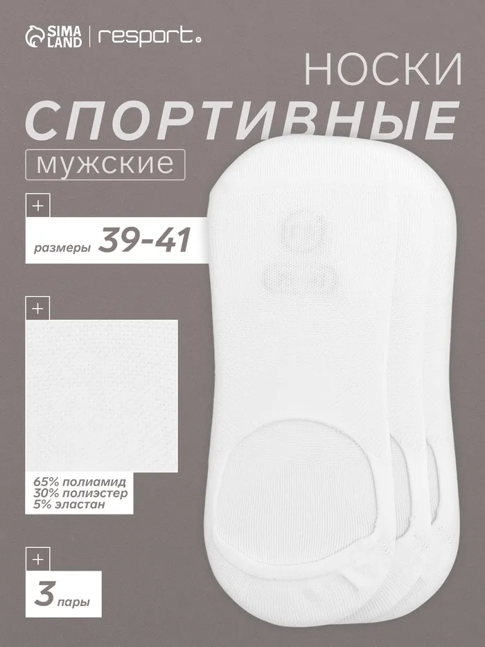Подследники мужские спортивные с компрессией 3 пары Resport, размер 39-41, белые — Характеристики