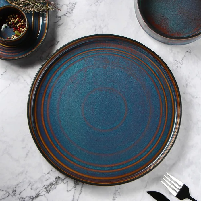 Посуда совмещает в себе безупречное качество и эффектный дизайн: рельефная текстура и необычный цвет «в крапинку». Фарфоровая подстановочная тарелка украсит сервировку как повседневного, так и праздничного стола, а также подойдёт в качестве подарка.