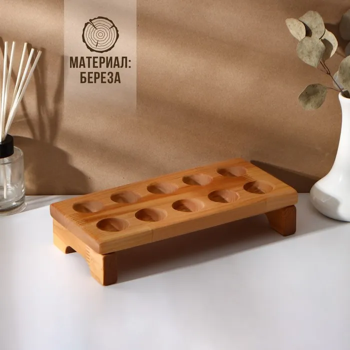 Подставка деревянная для яиц на ножках, 10 ячеек, термонаклейка на 7 яиц, береза, 25×12×5 см — Характеристики