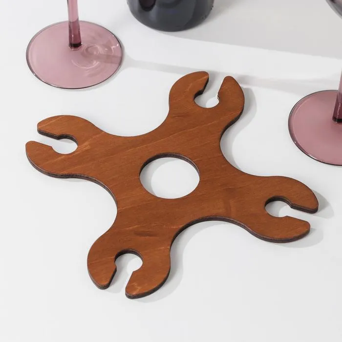Подставка деревянная для вина и четырех бокалов Доляна, 18×18×2 см — Характеристики