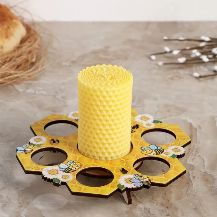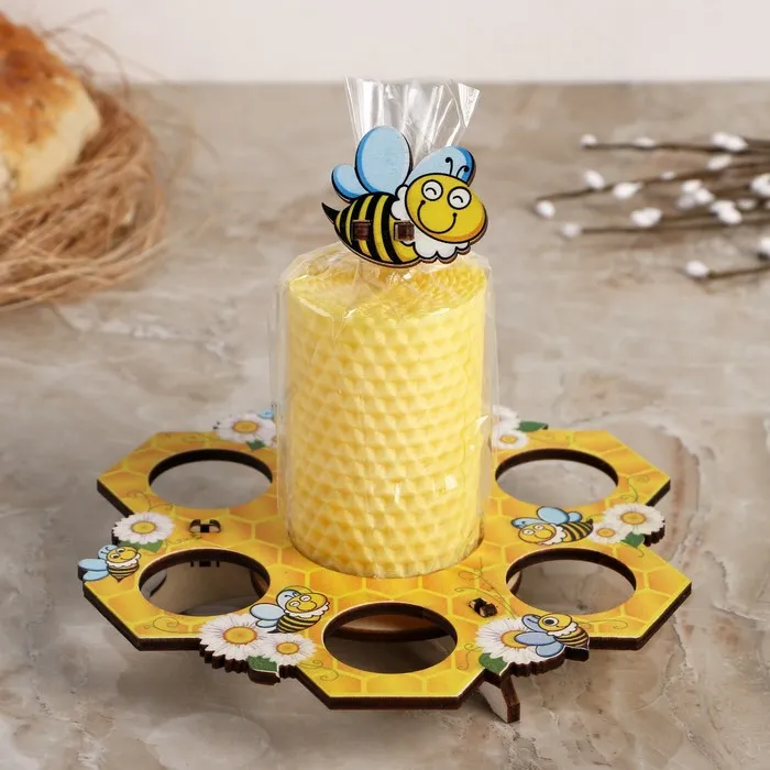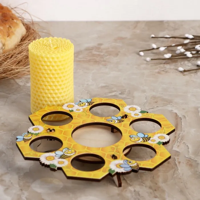 Создайте атмосферу уюта и тепла на вашем столе с этой уникальной подставкой для яиц, которая станет не только функциональным элементом, но и стильным украшением. С жизнерадостной свечой в центре, оформленной в стиле «Пчелы», она добавит нотку веселья и праздника в любое застолье.